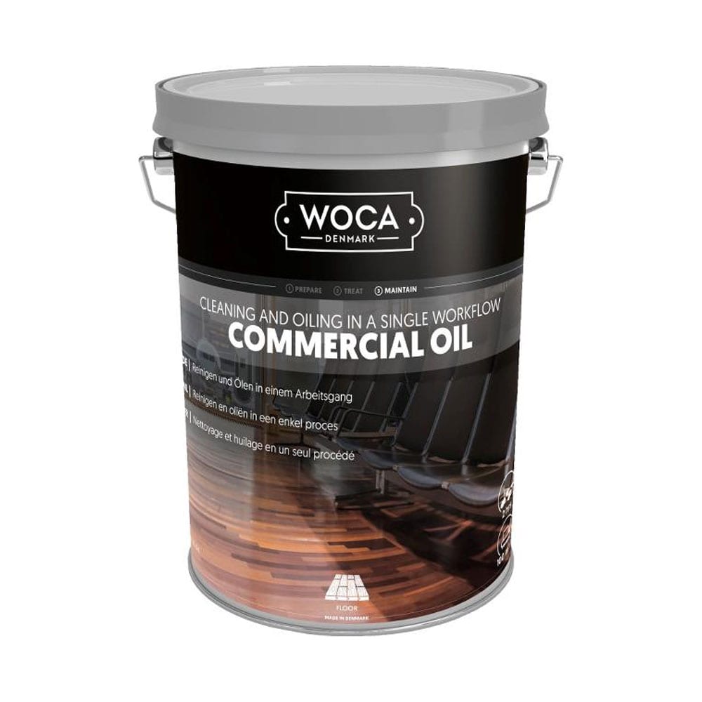 Commercial Oil anvendes til stærkt trafikerede områder, hvor der er brug for en dybdegående rengøring og oliering af træet på én gang. Olien er hurtigtørrende og derfor ideel til f.eks. lufthavne, togstationer og offentlige områder, hvor der ikke er mulighed for at lukke området i længere tid. Commercial Oil renser træet i dybden og efterlader overfladen vandafvisende og plejet.
